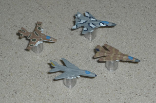 Lastly, I also have a 1/600 (3mm) set of cold war aircraft that I used for separate, air only fights, as well as some half-a$$ed rules I bolted onto CWC. They're mounted on Legos, just like my WW2 1/600 aircraft. Inventory: