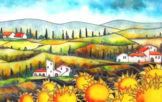 While meandering the streets of Assisi, we stumbled upon an art gallery that had these amazing paintings. They captured, in rich hues, the Umbrian landscapes we had come to love. Upon closer inspection, we found they were painted on glass. The vibrant colors intensified with the sunshine streaming through the shop windows. Beautiful.